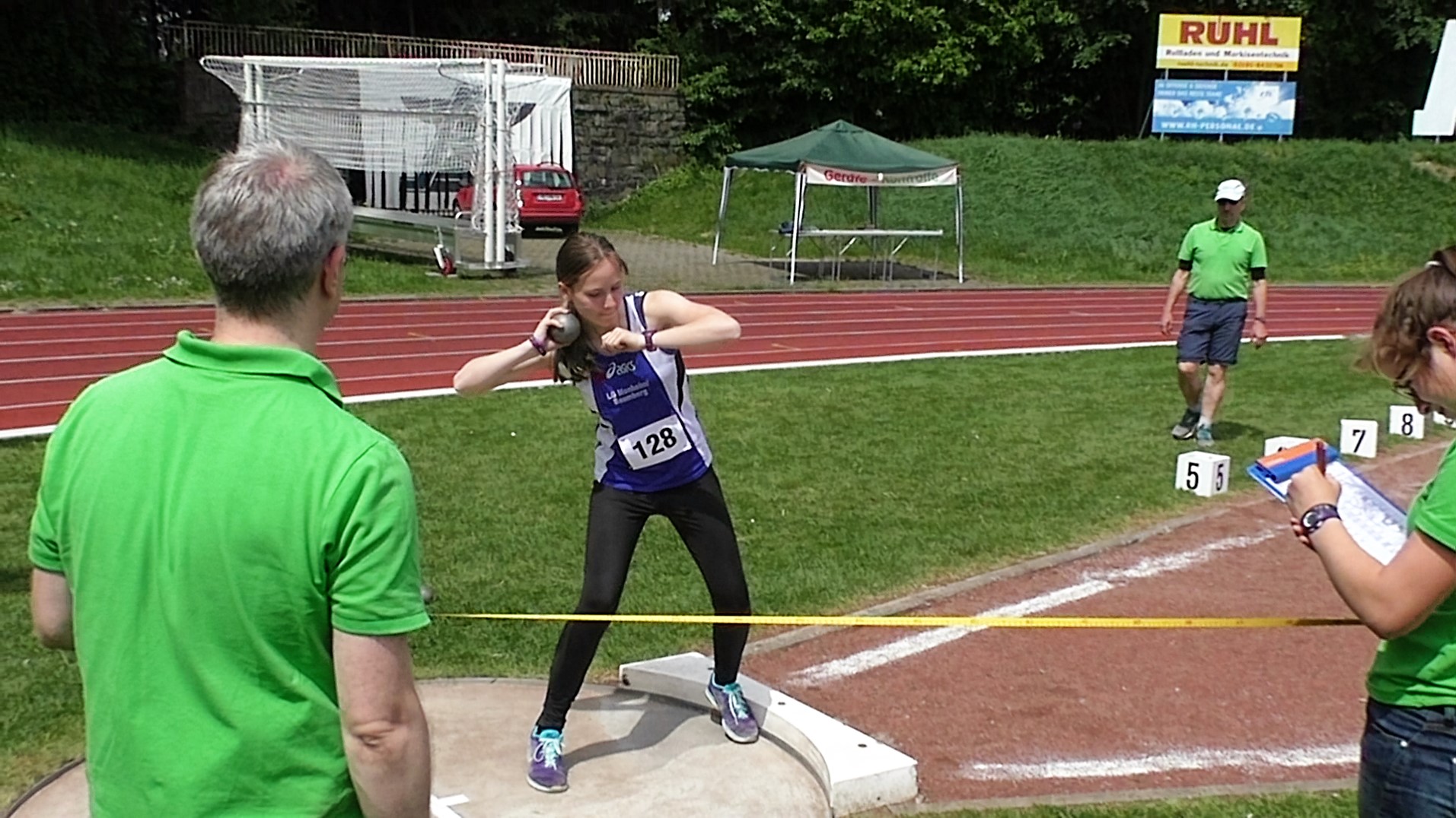 Der zweite Wettkampftag startete bei strahlendem Sonnenschein mit einer Überraschung aus Monheimer Sicht. Vanessa van der Bijl (W14) wurde bei ihrem allerersten Diskus Wettkampf überhaupt mit 18,16m auf Anhieb Kreismeisterin! Auch mit der 3kg Kugel überzeugte sie mit 7,00m auf Platz 7 im Finale. Johanna Scholz (W12) gelang mit guten Würfen mit dem Diskus und dem Speer (jeweils Platz 6) ebenfalls zwei neue Bestleistungen und Endkampfplatzierungen. Für die zweite Medaille am Sonntag sorgte Marie mit dem Speer. Mit einer Steigerung von fast 4 Metern über ihrer Bestleistung gewann sie mit klasse 22,51m die Bronzemedaille. Hinter ihr landete Hannah ebenfalls mit persönlicher Bestleistung von 16,70m auf Platz 7 im Finale. Mit dem Diskus überzeugten die beiden Monheimerinnen auf Platz 4 (Hannah mit ihrem ersten 17m Wurf, PB) und Platz 5 (Marie). Auch beim Weitsprung überzeugten beide: Hannah sprang 4,02m (PB) und Marie war bei ihrem besten Sprung der deutlich über die 4m ging leider knapp übergetreten. Über die 100m Sprintstrecke gingen Janne und Miriam an den Start. Janne lief in 14,15s neue Bestleistung und verpasste den Endlauf nur um wenige Hundertstel. Ins Finale der W15 lief dafür Miriam mit einer tollen Zeit von 14,24s. Im Finale konnte sie sich trotz Gegenwind noch einmal um eine Hundertstel steigern und kam auf einen guten 10. Platz.