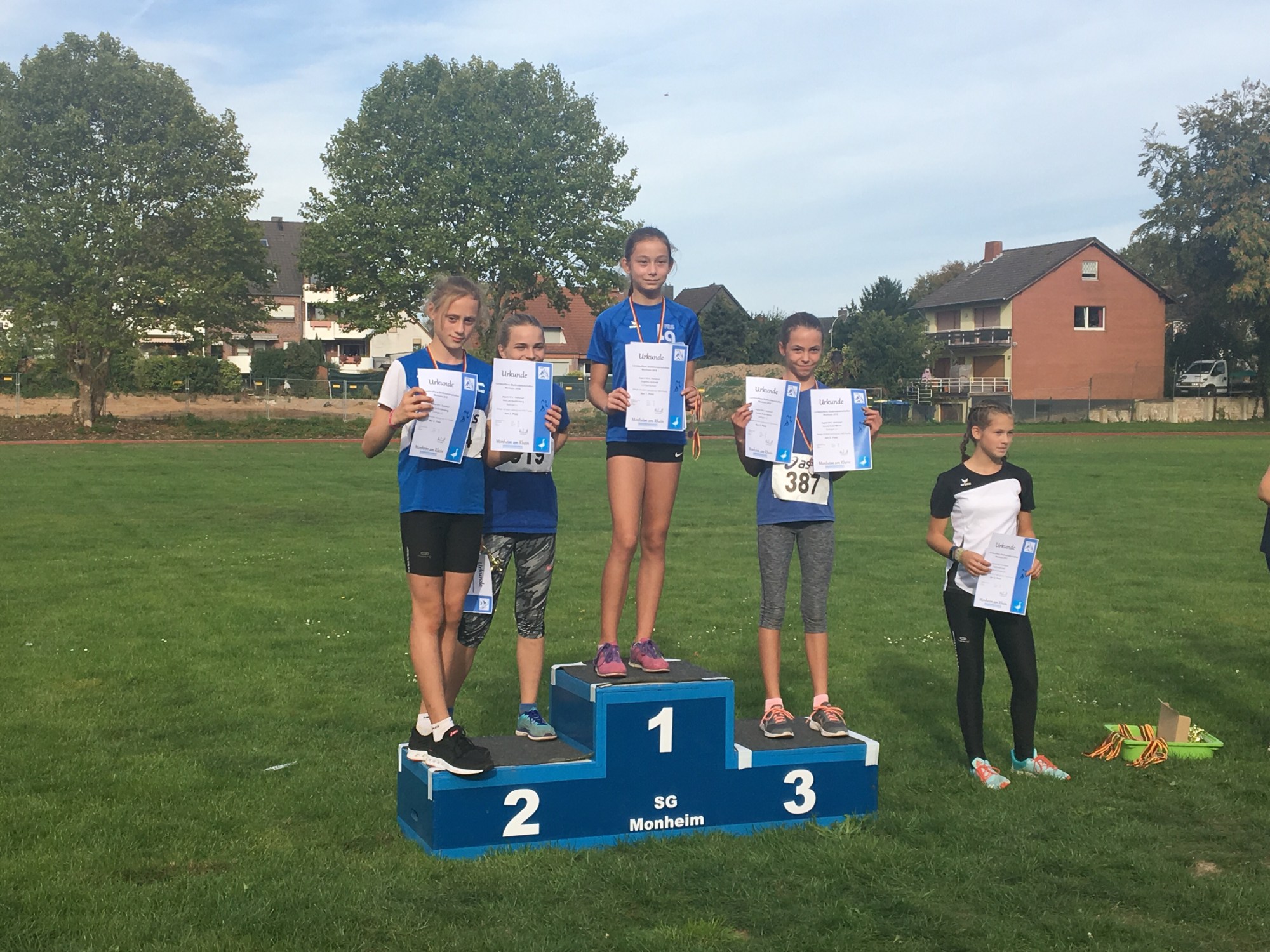 Auch in diesem Jahr wurden die Stadtmeisterschaften in Monheim wieder landesoffen ausgetragen. Bei nahezu optimalem Wetter gab es viele klasse Leistungen zu sehen. Um nur ein paar davon zu nennen: Mit 2140 Punkten im Vierkampf setzte sich Leif Deinet (M14, Solinger LC) an Position 1 der Nordrhein Bestenliste; gleiches gelang Eva Christman (W13, FC Straberg) mit u.a. starken 1,56m im Hochsprung und insgesamt 1899 Punkten; im Dreikampf der W13 kam Lara Christiansen (LG Remscheid) auf 1350 Punkte (Platz 4 der Nordrheinbestenliste) und die 11-jährige Antonia Jakobs (Wiehltaler LC) überwand 1,36m im Hochsprung. Aber auch die Monheimer Athleten wussten zu überzeugen.